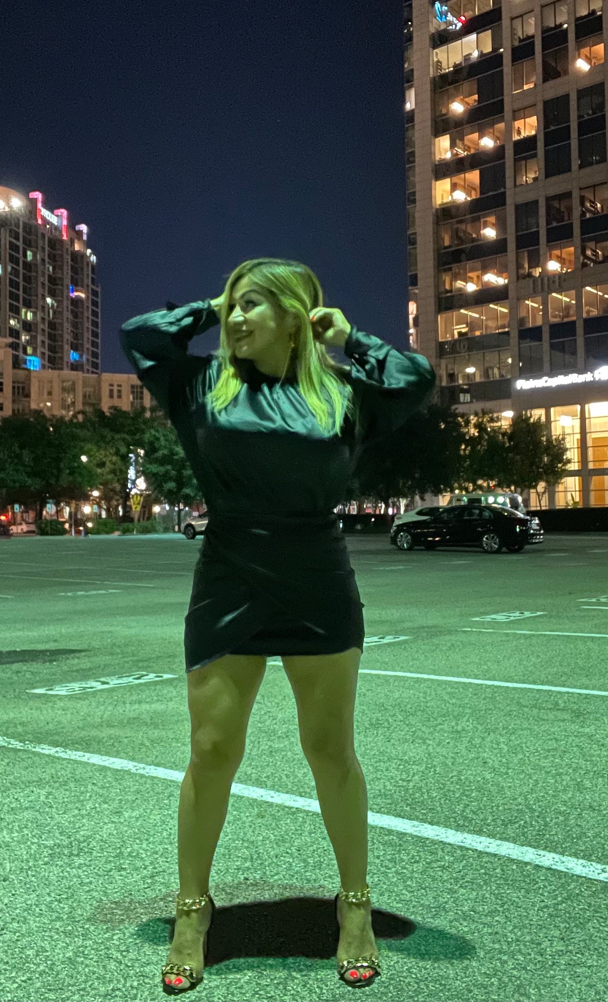 This cocktail wrap dress is perfect for that special occasion, your next big event, or next night out in the city or downtown! Easy to show your curves and make sexy and elegant presentation. Featuring a black satin unique design with a flattering loose casual front tie, round high neck, unique long sleeves with buttoned cuffs and buttoned back fastening. Fitted size