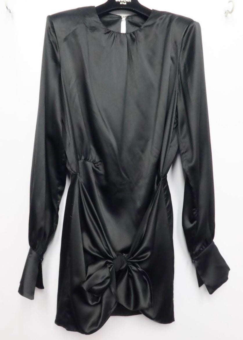BLACK SATIN LONG SLEEVE WRAP DRESS
