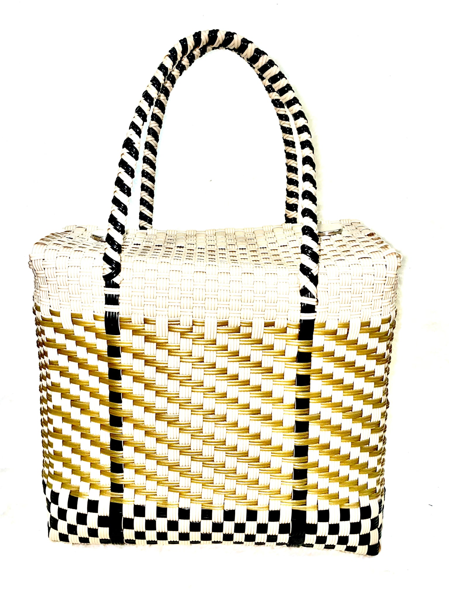 Esta bolsa de moda, duradera, practica y muy espaciosa. Hecha en México con plástico reciclado y tejida a mano por Artesanos Mexicanos.