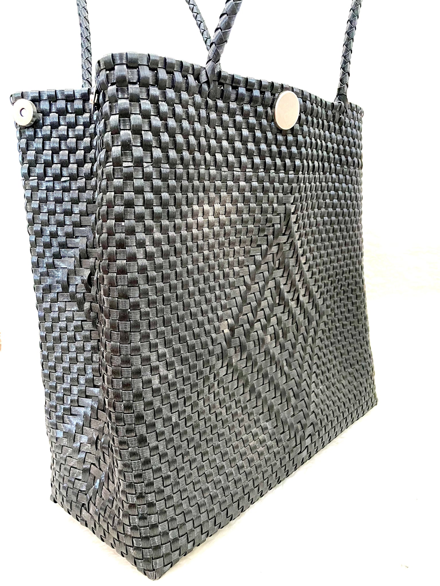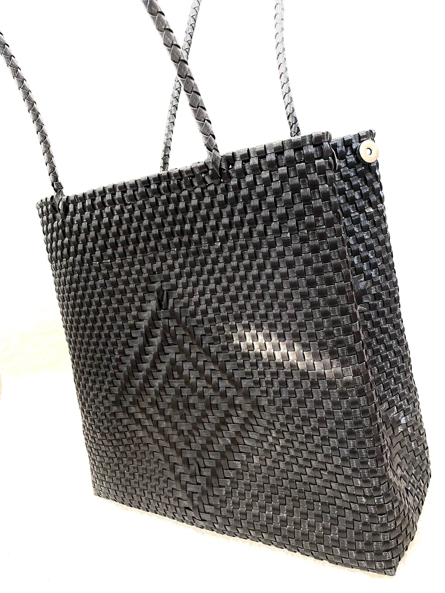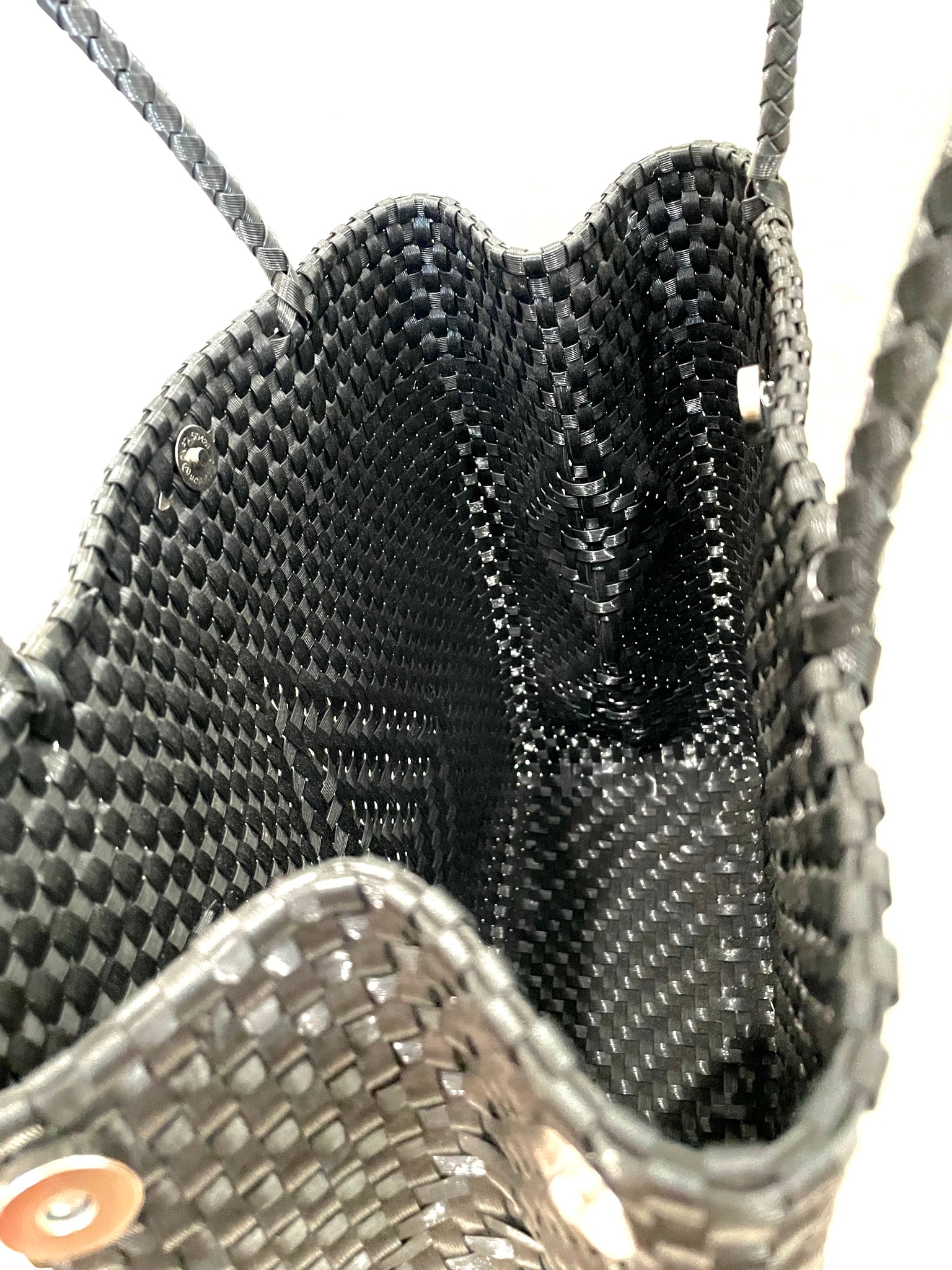 Esta bolsa de moda, duradera, practica y muy espaciosa. Hecha en México con plástico reciclado y tejida a mano por Artesanos Mexicanos.